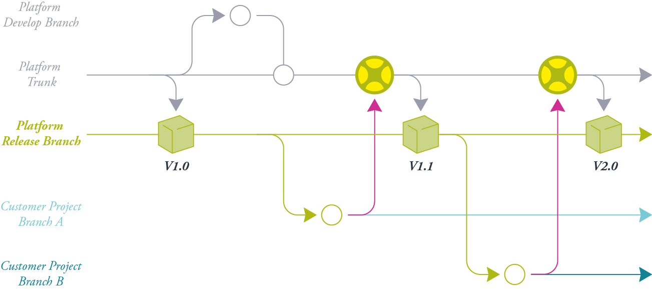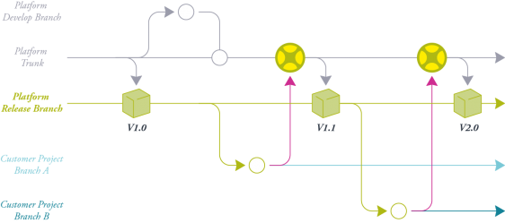 Develop your product lines with concurrent or even geographically distributed teams, involve your suppliers or customers in the modeling or review process and then create a new base line.